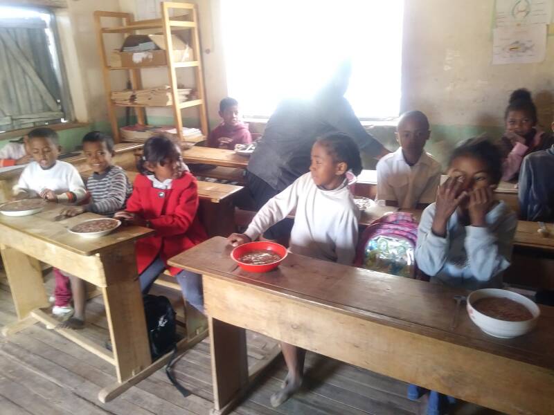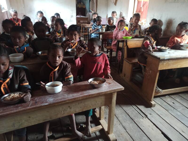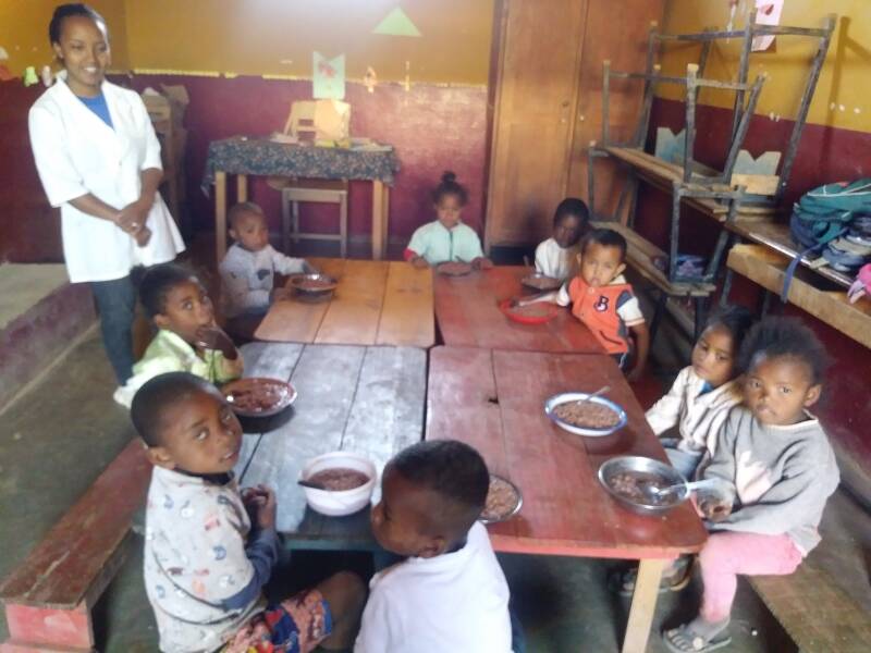 - We, "Gasy Mampita", have been working since March 1, 2021 on the "canteen of the heart" project, involving the 14 public primary schools of Ambohitrimanjaka. There are 3330 schoolchildren, and we share free lunches for them. Most of these children are not lucky enough to have a stable life (single parent, poverty, life with grandparents, etc.). In addition, the passage of the COVID 19 pandemic: time of year when parents do not earn much money, so they cannot ensure a healthy and complete diet for their children.